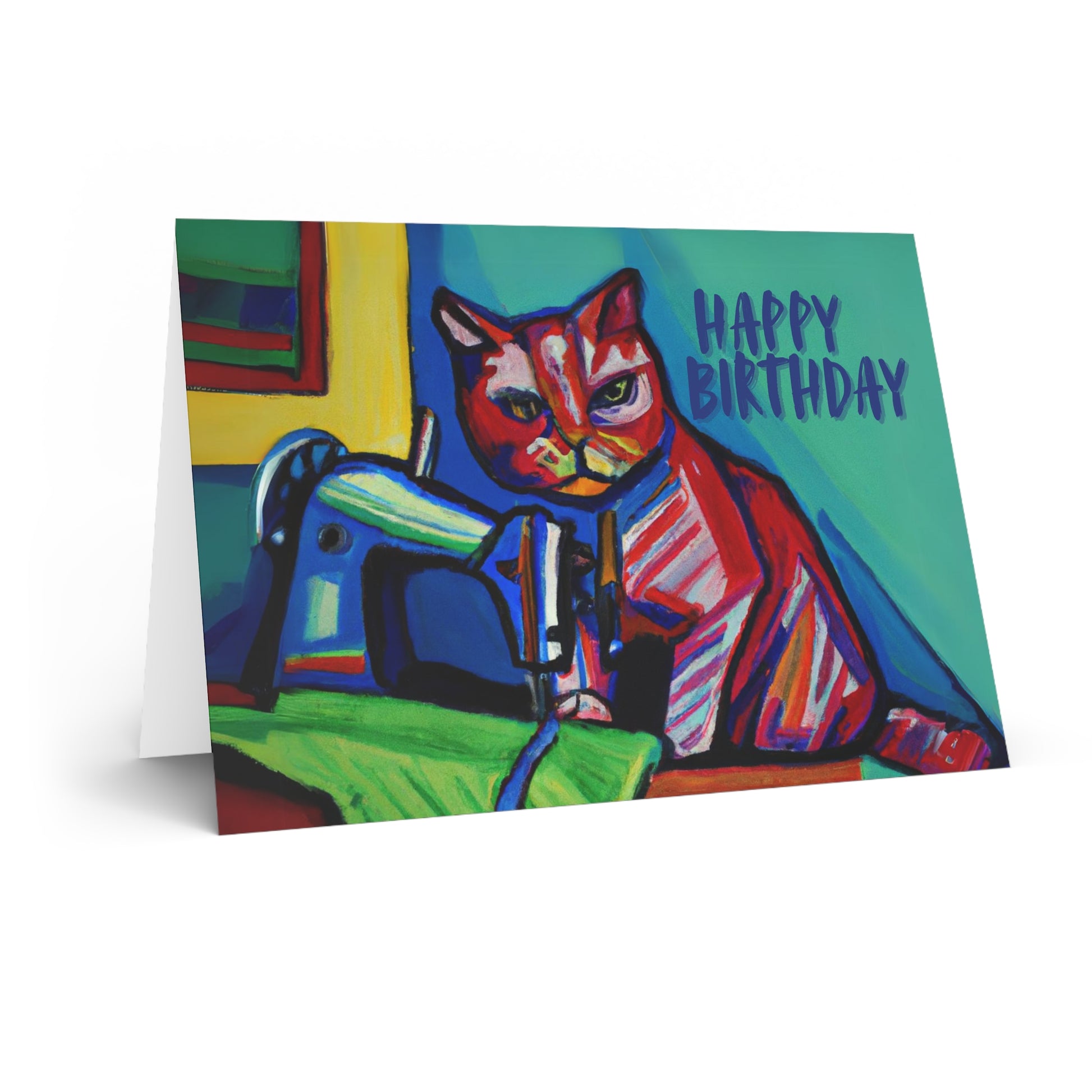 This birthday card celebrates the art of sewing and cats, so it's just purrfect for cat lovers and sewing enthusiasts alike.