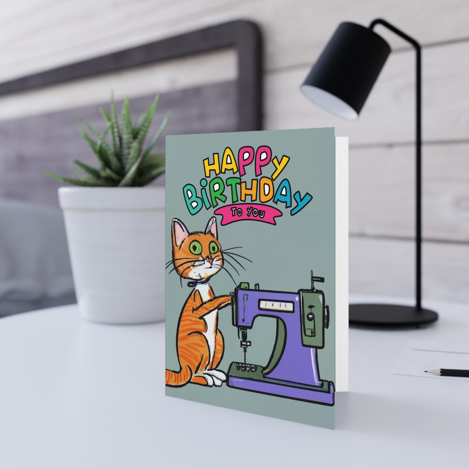 This birthday card celebrates the art of sewing and cats, so it's just purrfect for cat lovers and sewing enthusiasts alike.