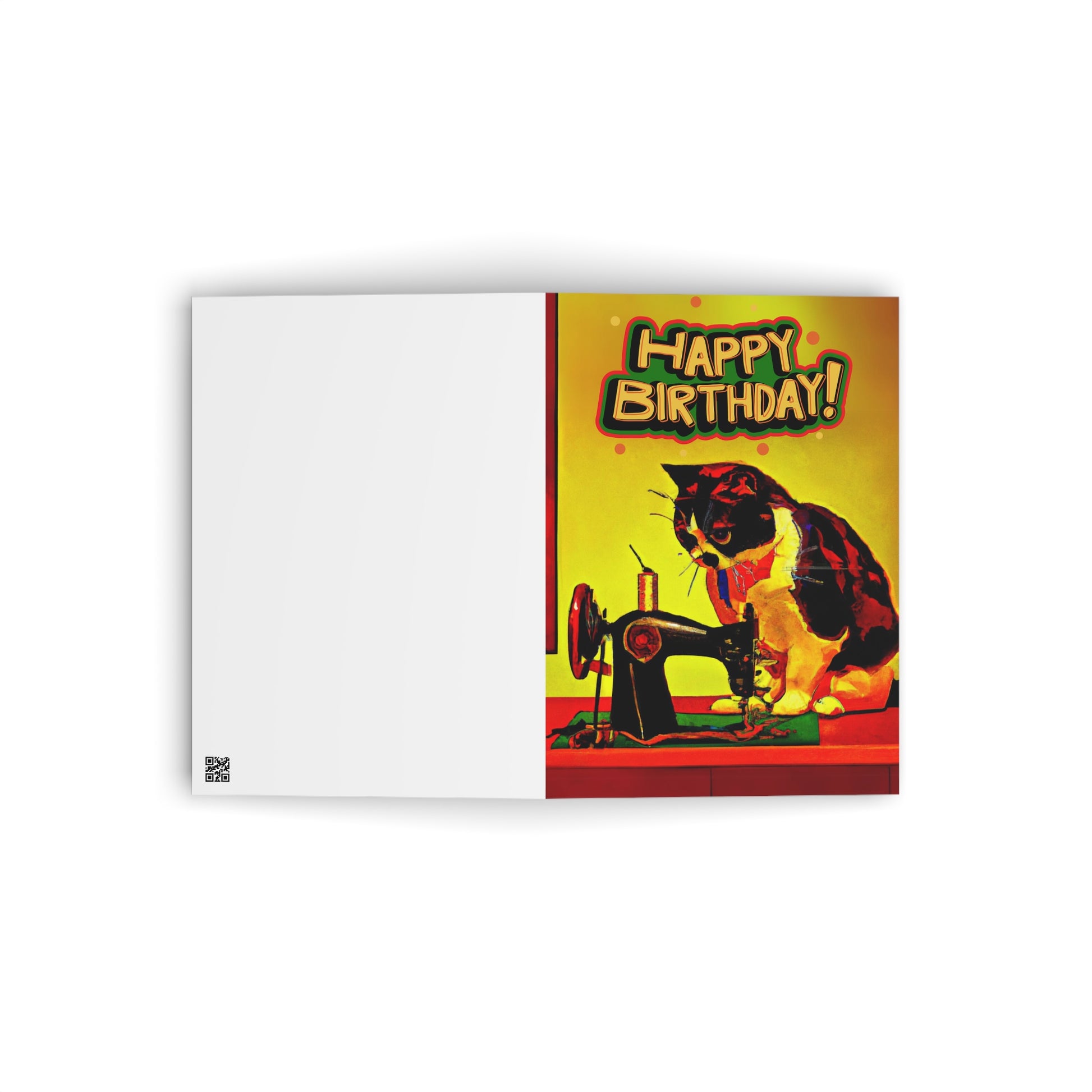 This birthday card celebrates the art of sewing and cats, so it's just purrfect for cat lovers and sewing enthusiasts alike.