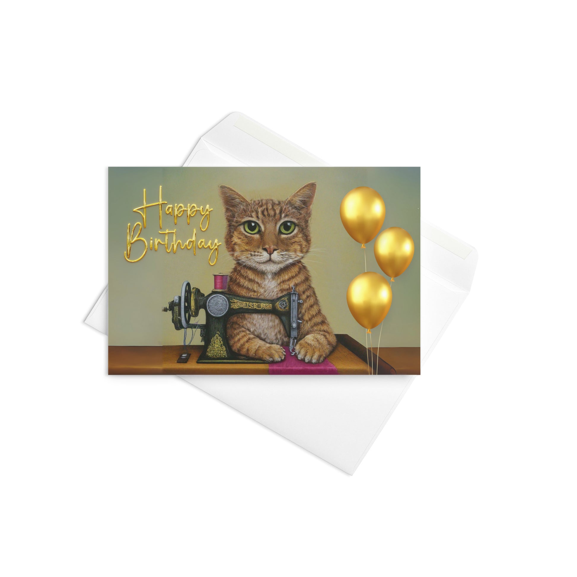 This birthday card celebrates the art of sewing and cats, so it's just purrfect for cat lovers and sewing enthusiasts alike.