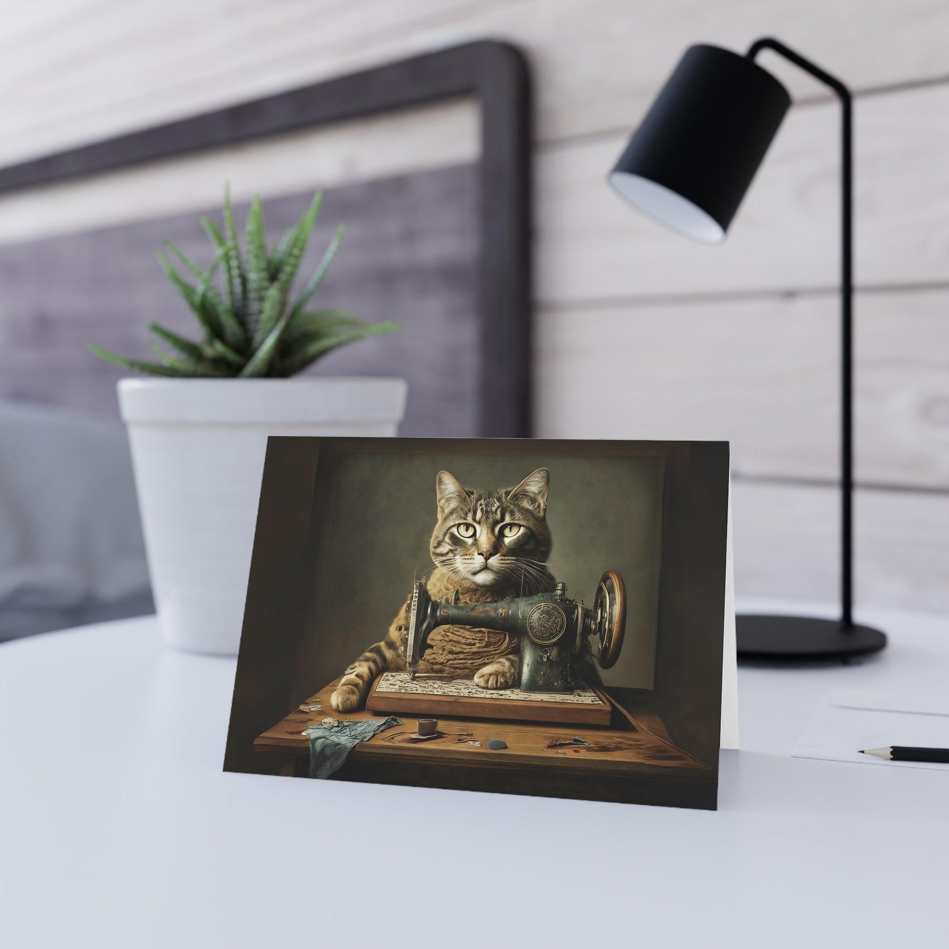 This greeting card celebrates the art of sewing and cats, perfect for cat lovers and sewing enthusiasts alike. Blank inside, perfect for any occasions whether a thank you notes, birthdays, or to show appreciation anytime.