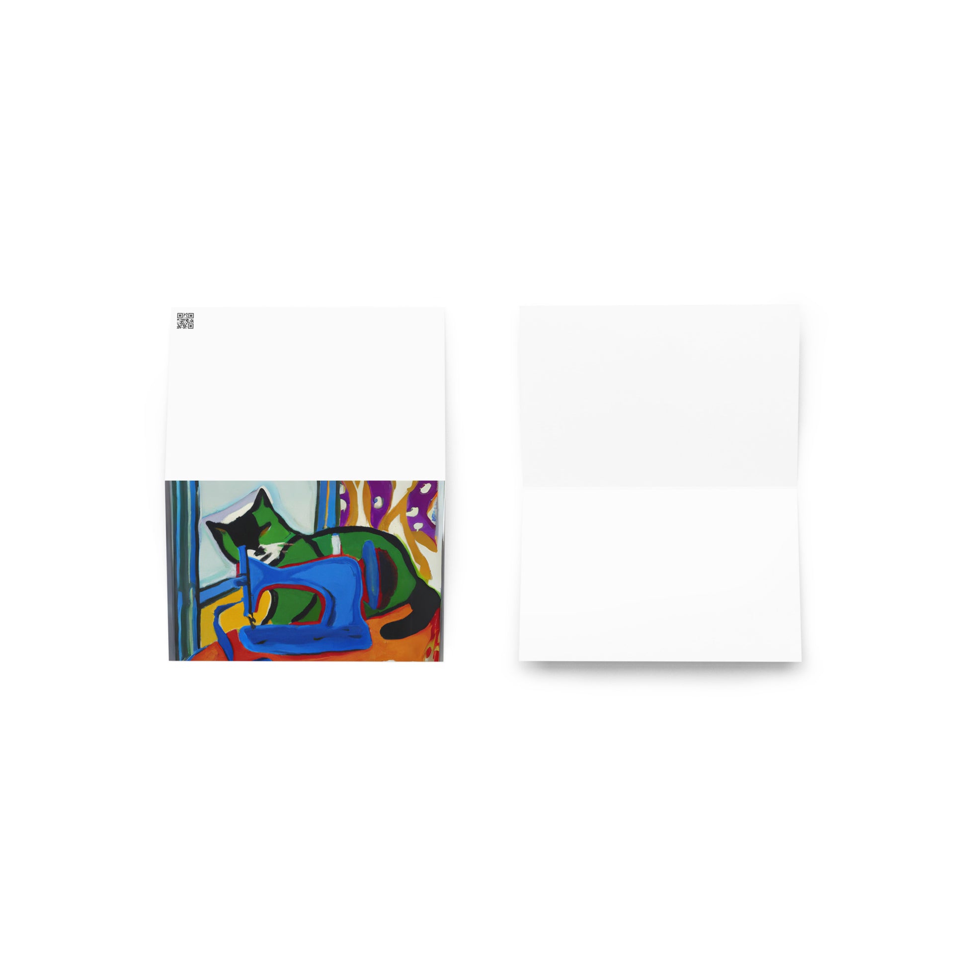 This greeting card celebrates the art of sewing and cats, perfect for cat lovers and sewing enthusiasts alike. Blank inside, perfect for any occasions whether a thank you notes, birthdays, or to show appreciation anytime.