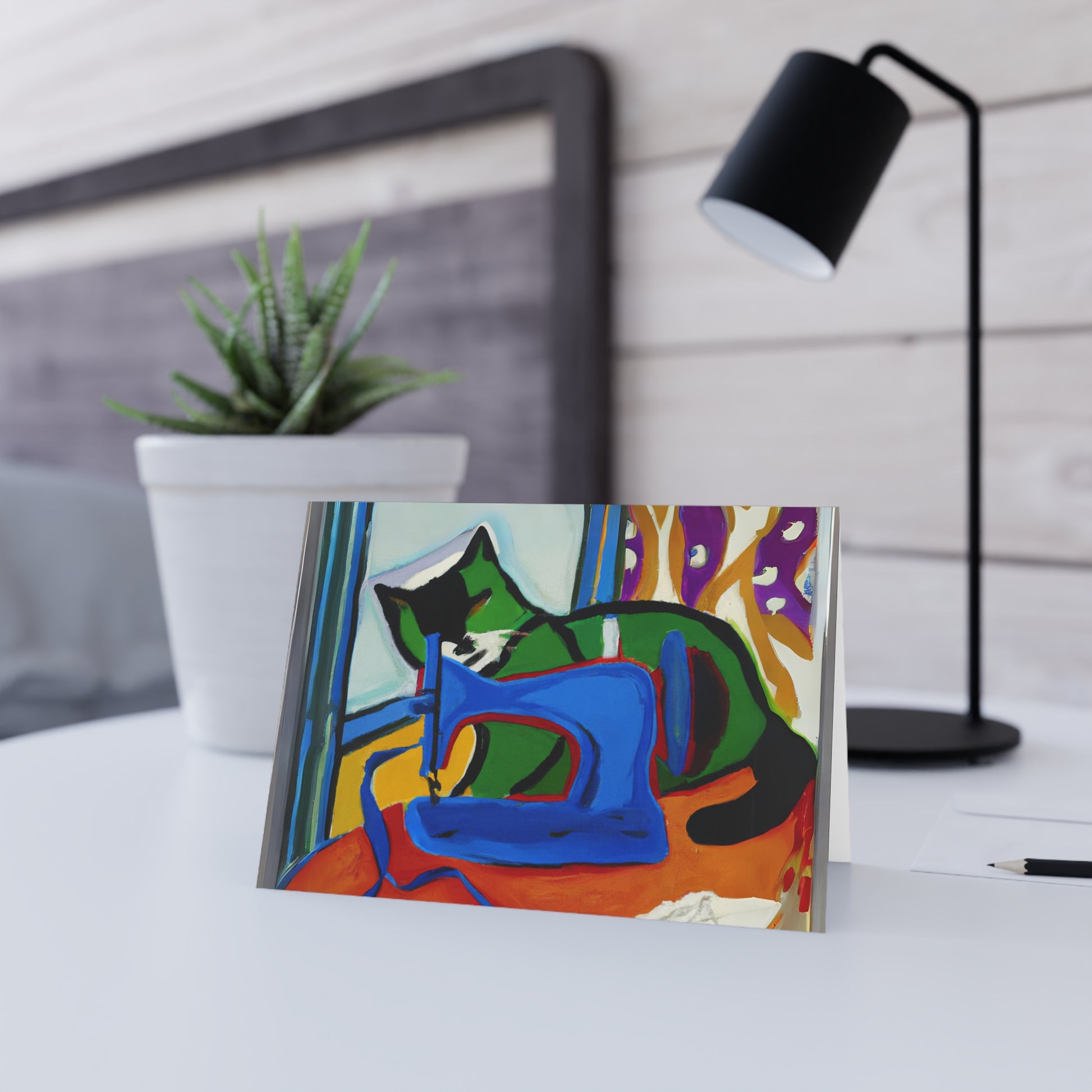 This greeting card celebrates the art of sewing and cats, perfect for cat lovers and sewing enthusiasts alike. Blank inside, perfect for any occasions whether a thank you notes, birthdays, or to show appreciation anytime.