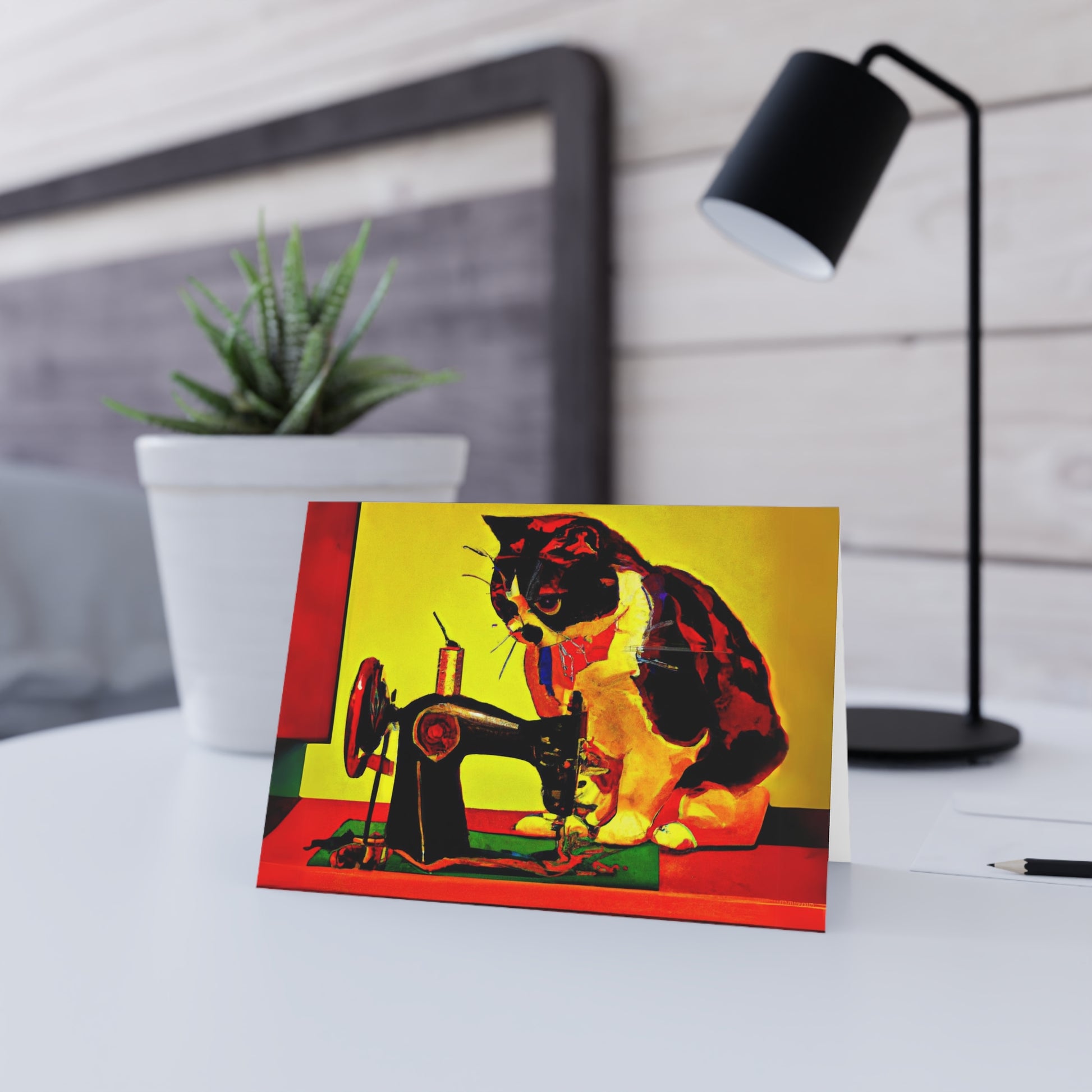 This greeting card celebrates the art of sewing and cats, perfect for cat lovers and sewing enthusiasts alike. Blank inside, perfect for any occasions whether a thank you notes, birthdays, or to show appreciation anytime.