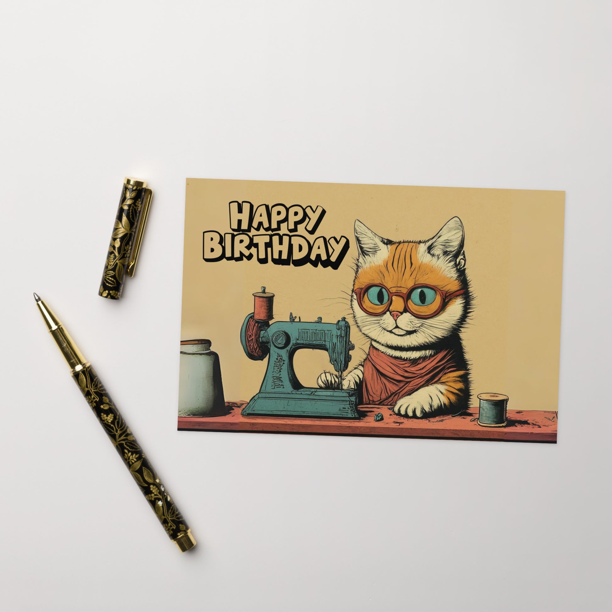 This birthday card celebrates the art of sewing and cats, so it's just purrfect for cat lovers and sewing enthusiasts alike.