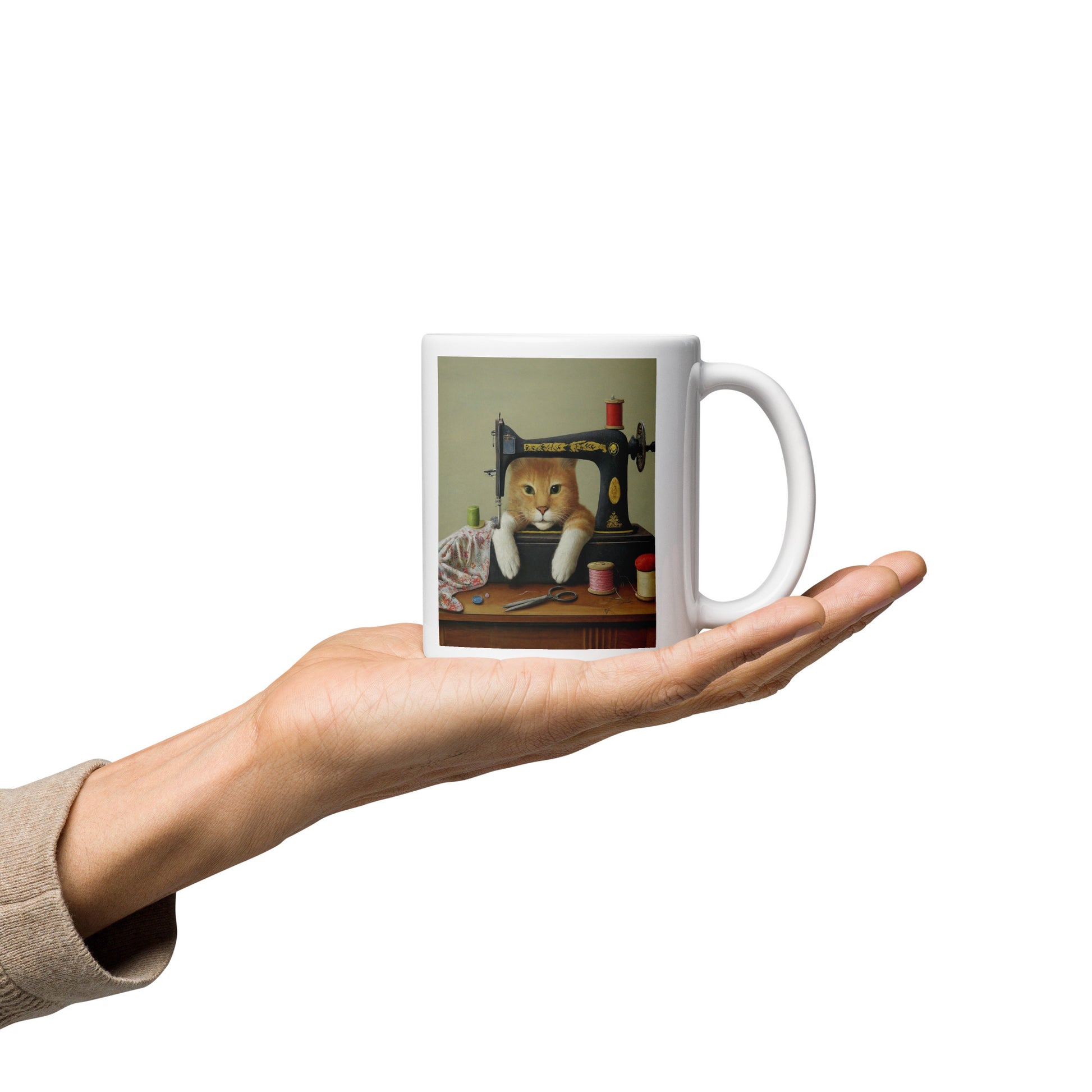 Cute Ginger Sewing Cat Mug