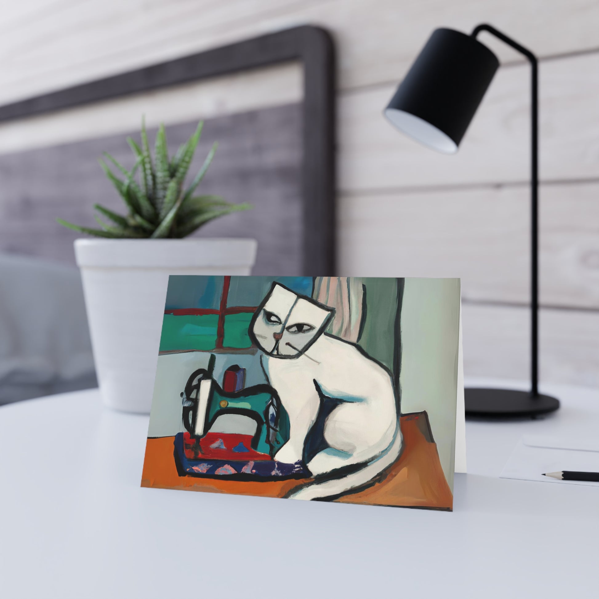 This greeting card celebrates the art of sewing and cats, perfect for cat lovers and sewing enthusiasts alike. Blank inside, perfect for any occasions whether a thank you notes, birthdays, or to show appreciation anytime.